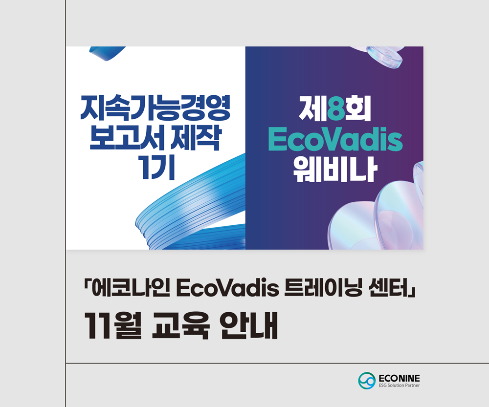 에코나인 EcoVadis 트레이닝 센터 11월 ESG교육 프로그램 안내