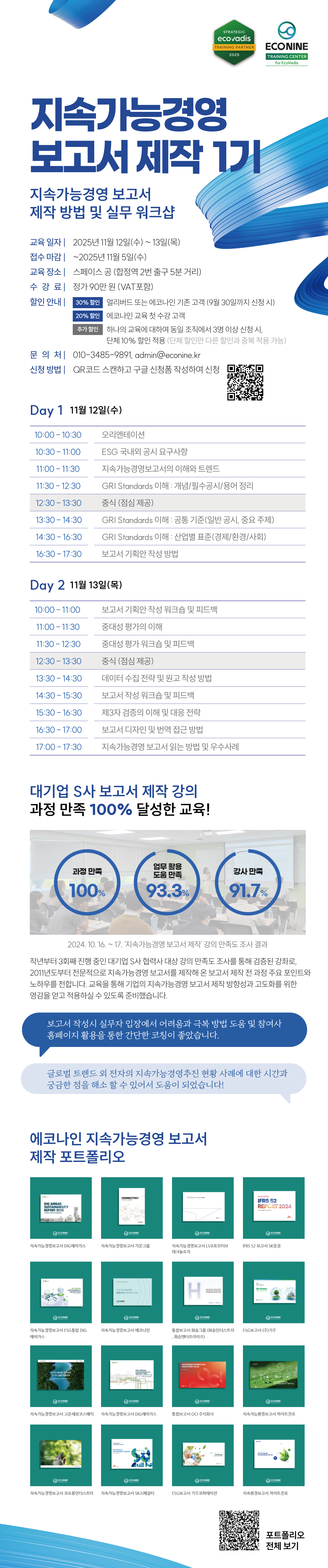 ESG 공시 대응부터 실무 보고서 작성까지, 올해 마지막 ECONINE ESG 교육!