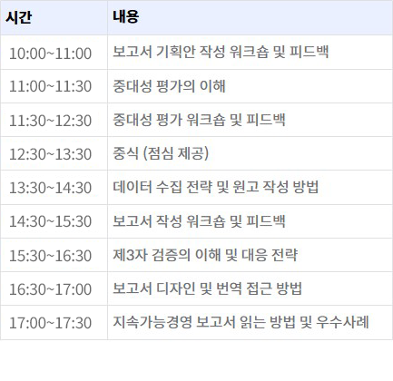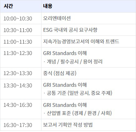 이는 단순 교육을 넘어 수료 이후 기업이 자력으로 지속가능경영보고서를 작성하거나 외부 대응력을 갖추는 데 실질적인 기반이 됩니다.